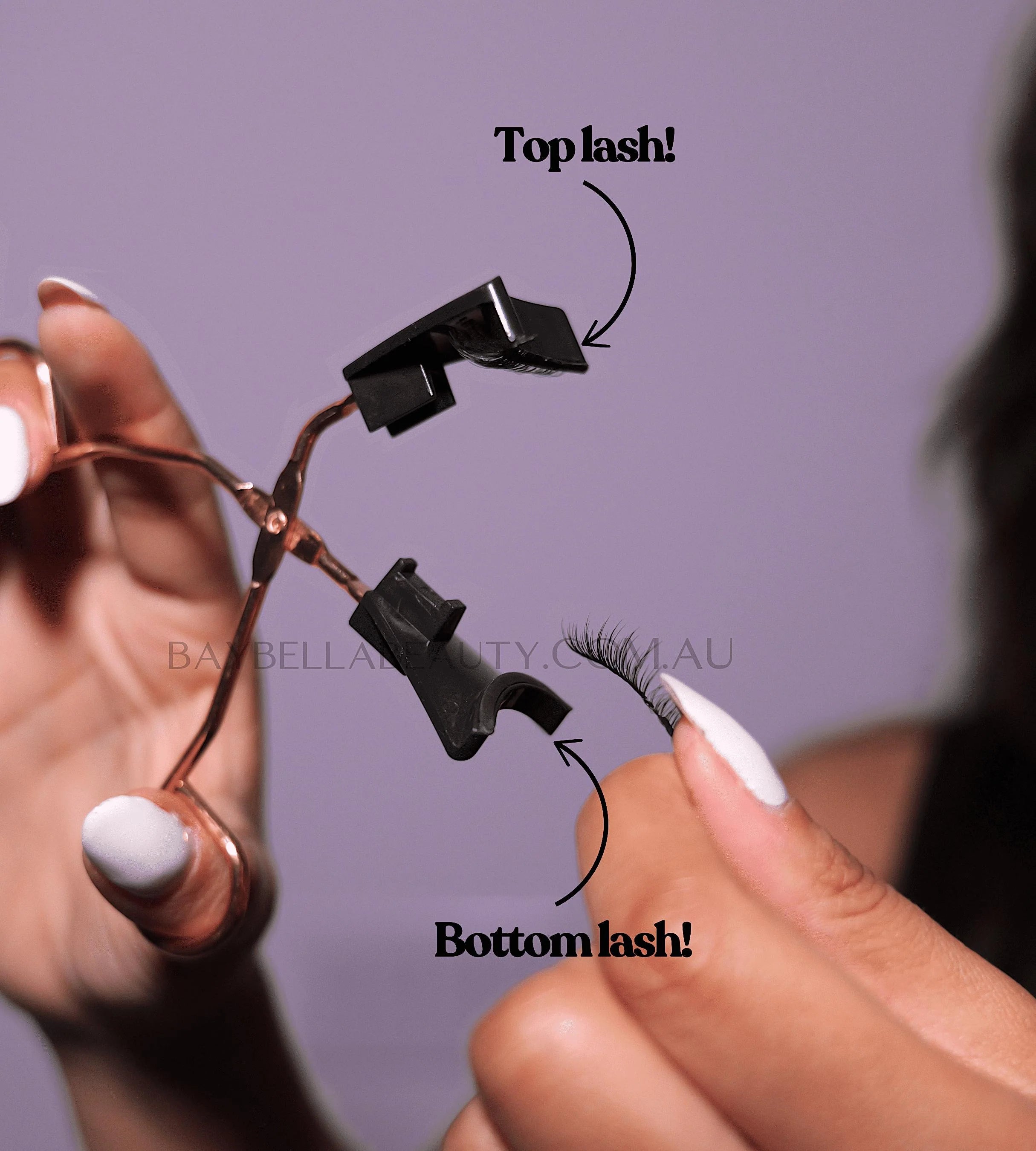 Once you clip the lashes together, they should release from the applicator and attach onto your natural lashes.